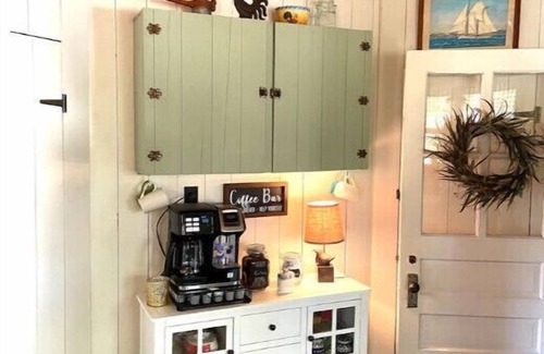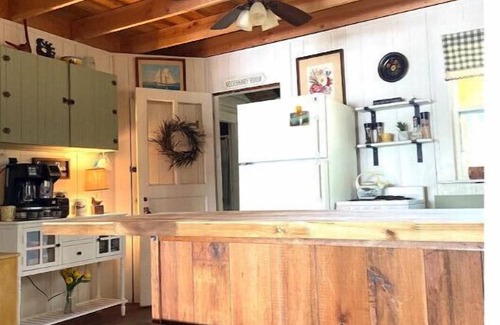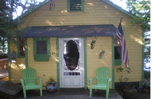 Island Hide-Away..WITH BOAT DOCK.. This magical, authentic 1940's knotty pine cabin echo's summertime past. Step back in time when you enter this super cozy, nostalgic, happy little cozy cabin. Private island is host of 10 homes. Large deck with tiki bar, private boat dock. Gas grill and charcoal grill for outdoor entertaining. Fire pit for smore's under the stars, outdoor shower. Enjoy a peaceful get away that allows you to completely unplug and brings you back to yester year! NO PARTIES !! 2 kayak, 1 canoe on site for guest use.