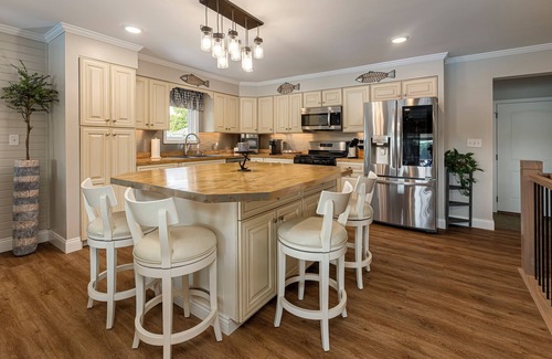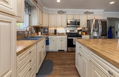 • Fully Stocked Home: Linens for every bed, a fully equipped kitchen with all the cooking supplies you could need, propane for the grill, and a bundle of firewood for the fire pit.