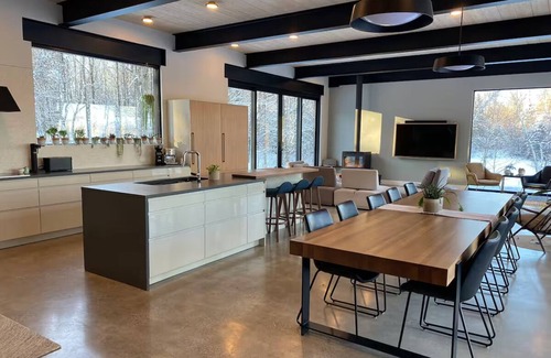 Best-rates for the Lake-front Scandinavian House starts from $170 per night with includes Child Friendly, Internet, Laundry, Security/Safety, Bedding/Linens, Wellness Facilities, Fireplace/Heating with all other amenities. Perfect for Weddings is committed to ensuring every guest experiences a comfortable and extraordinary stay, whether planning a romantic getaway, a honeymoon, a pet-friendly stay, or celebrating with the entire wedding party.