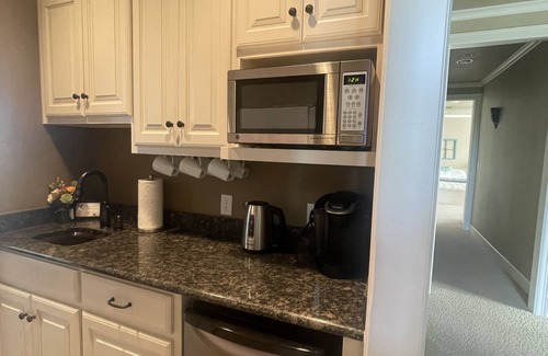 A pellet grill and 2 propane grills are both available in the outdoor kitchen areas.