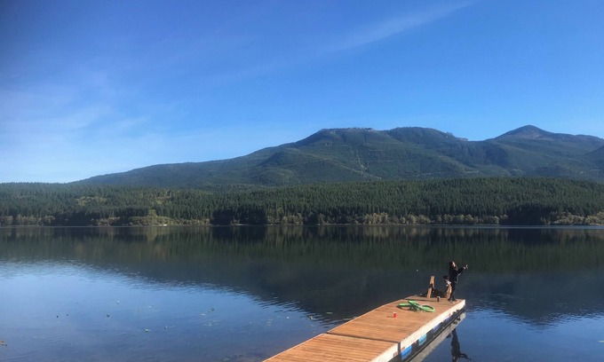 This off grid lake front retreat lets you unplug and soak up the beauty of the north island. The stunning lake and mountain views allows you to reset, watch endless stars in the vast night sky away from city lights. Explore the unique sites of beautiful North Vancouver island.