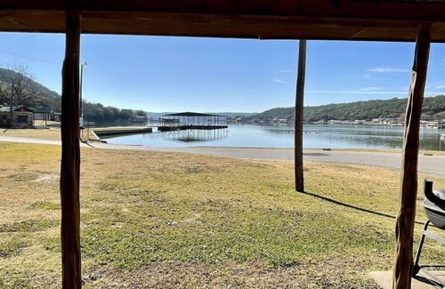 Lake front cabin with covered patio, outdoor grill, full kitchen. Steps from the water, dock and boat ramp.
