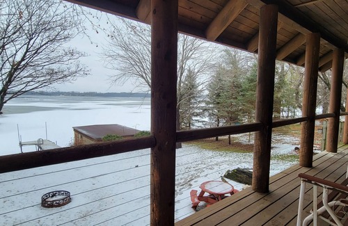 Relax with the whole family at this beautiful log cabin right on the lake! Enjoy what the lake has to offer year round, between the warm days filled with sunshine or the ice activities happening in winter! This cabin offers 2 bedrooms, 2 baths, spiral staircase leading to a walk-out basement, a pier, and much more.