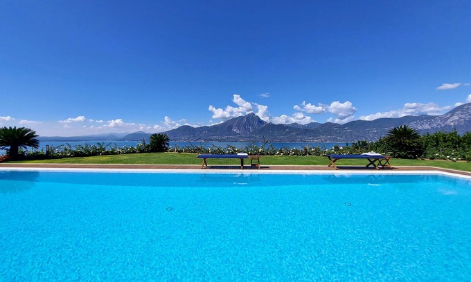 Luxury studio apartment, elegantly decorated and fully equipped, situated in an fully fenced estate over 1 acre with large private pool and landscaped garden, on the hill of Torri del Benaco, with stunning view of the Lake.