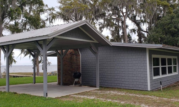 This is a beautiful home situated right on Lake Harris in lake county Florida. If you are looking for a little piece of paradise then this is it! Imagine having your cup of coffee in the morning and looking at the sunrise on the lake. This is a newly updated home built in 1950 with all original heart pine walls. It has 1 bedroom, 1 bath, large windows throughout the house so you can take advantage of the lake views. From here you can take advantage and see the 4th of July fireworks from multiple towns, this is quite the view. WiFi, cable, heat and air with all the basic necessities you may need throughout the house. There is also a washer and dryer for your use. We invite you to our little bit of paradise but we ask you that NO boat mooring or swimming to be done. please keep in mind every body of water in Florida could have venomous snakes and/or alligators and we ask that you stay out of the water and keep pets out too. The owner will NOT be held liable for any accidents. By renting this house you agree to these terms.