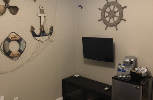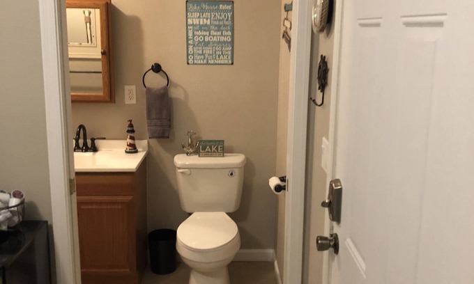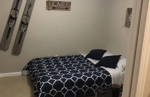 We have a guest suite on the back of our house with its own private entrance. Has plenty of boat parking and RV parking with hook ups. Room has a full size bed that sleeps to comfortable. Has great shower, vanity sink, clean toilet. Has mini fridge supplied with water. Has Kuerig one cup coffee maker. Wall mounted TV with Directv. Come with portable AC with remoter for your comfort pleasure. Close to Lake and launch ramp. 3miles from downtown restaurants and shops. Room is decorated with lake theme wall mount for ambiance. Comes with all amenities. Clean towels, shampoo and conditioner, body soap an wash towels. Have chairs out front for outdoor for pleasure and night stars. Please come visit us and enjoy our quint little guest suite!