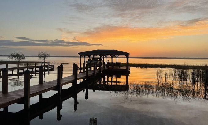 Experience Lake Wales like a local in this 2-bedroom lake front home. Marvelous views await you from the comfort of the sunroom or the full outdoor experience from the patio or the extended pier and covered dock. Lake Rosalie is 4,530 acres with great bass fishing! The maximum depth is 61 feet with an average of 15 feet. Bass, white catfish and crappie are among the many fish that inhabit this lake. Birds that can be routinely viewed from the dock including eagles, osprey, sandhill cranes, herons and so many more! Wildlife that will often make an appearance: pair of otters and the Florida alligator! No worries, they stay in the water! Morning sunrise over the lake viewed from the sunroom or out on the dock is one of our favorite times! With a cup of coffee, it is the best! Enjoy the use of the rowboat to do some simple fishing and exploring or maybe the golfcart to take a ride to the local restaurant the Big Dog Outpost....not a big place :) Evenings relax with lake views, maybe some bird watching while supper is on the grill! Make use of the Starlink internet and separate workspace desk if you must but take time to recognize and enjoy the nature that surrounds you!