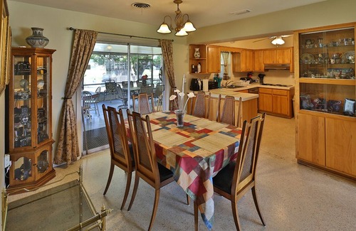 The best features of the house is the 900+ sq. ft. screened in patio in the rear of the house. It stretches almost the whole length of the house and faces the fresh water canal with boat dock. Birds, otters and other animals are often seen in the back yard. Fishing can be done from dock in the canal, or if you have a boat, the lake is huge, 5500 acres. There is a new ping pong table on the patio, along with 3 kayaks. Plus a 14ft canoe outside. (See photos of house). Guests use entire house, amenities, canal, dock, kayaks, canoe, & peddle boat at their own risk. Owner assumes no liability for kayak, dock, boat, waterway and property use of any kind. To use the kayaks or canoe requires a signed liability release provided by the host.