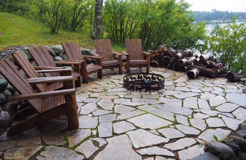 Lakeside firepit with 6 chairs.