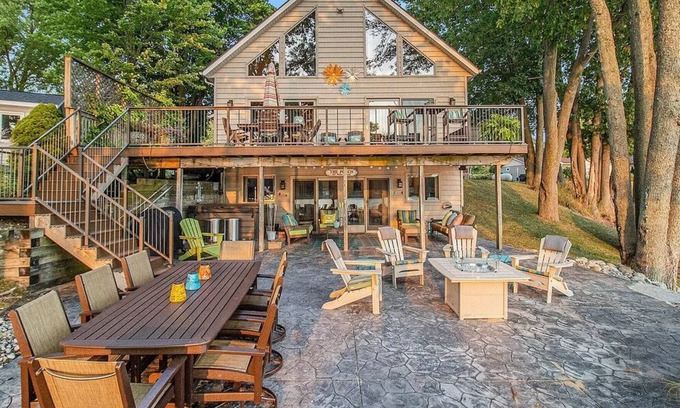 If you're looking for the ideal waterfront property for entertaining, swimming, boating, or lounging by the water, Lost Lake Escape is your perfect vacation destination! This 3 Bed, 3 Full Bath home positioned on the waterfront of all-sports Lost Lake offers spectacular views from inside and out. The expansive deck & impressive stamped concrete patio make the perfect spots for outdoor dining & gathering all while just steps from the water. Spend your evenings gathered around the Gas Fire Pit & soaking in the Hot Tub. Enjoy the convenience of the large private aluminum dock with landing area for docking your boat & taking in the sunset. The sandy beachfront & waterfront will be enjoyed by all ages! Amenities include free Wi-Fi, 3 Smart TVs, Air Conditioning, Washer and Dryer, Dishwasher, Hot Tub, Private Dock & much, much more.