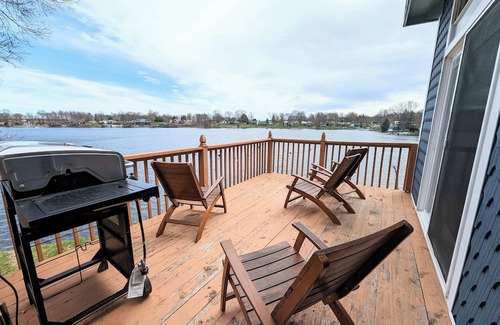 Inside, you'll find amenities such as board games, a dartboard, and free Wi-Fi for entertainment. Explore the lake with two provided kayaks and paddle-boards or fire up the propane grill on the deck for a lakeside barbecue.