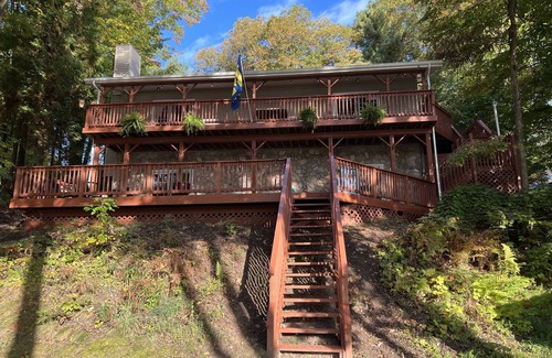- Tranquil Lakefront Log Home with Fireplace, Private Dock and Hot Tub!
