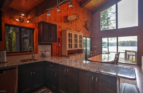 Whether you're looking for a family getaway, a romantic retreat, a gathering spot for friends or some quiet in the woods this welcoming property in Otis offers gorgeous sunset views, a lakefront steps from the front door with ample sleeping space and charm. The fully renovated kitchen with granite counter tops and modern fresh stainless steel appliances is the perfect place to prepare small bites or an elaborate meal with local farm fresh produce.