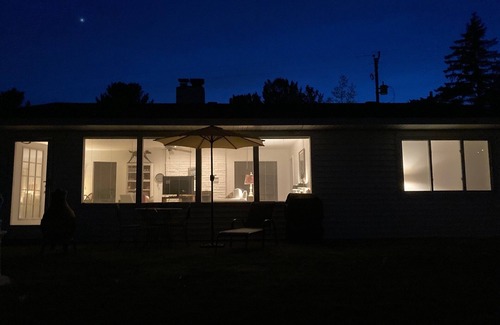 - Modern A-Frame on fenced, wooded Lot. Pet friendly!