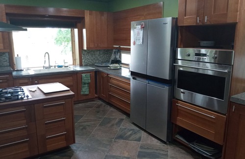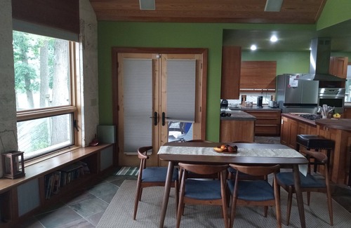 The home is heated by radiant floor heat, so walking around in your socks in cold weather is easy.
