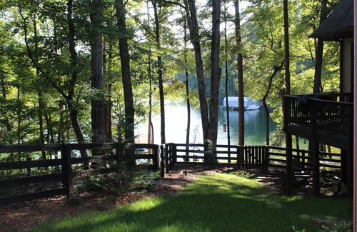 Home on beautiful waters edge with shallow entrance leading to deep water in a quiet cove offers the vacation you and your family and friends have been looking for. The scenic drive through winding roads to sunrises and sunsets on the balcony or boat dock, you are sure to feel at home while making memories to last a lifetime. This property is protected by the Corps of Engineers preserving the natural beauty of the north Georgia Mountains allowing you to experience the deer and other wildlife that freely roam the area.