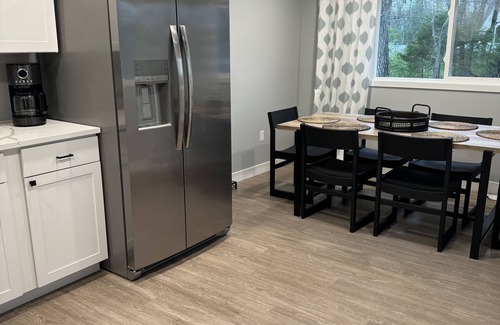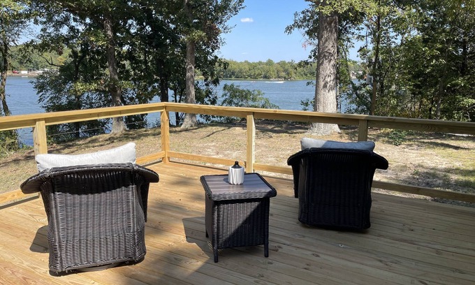 This lake house offers spectacular views of Centralia Lake. Located on a private point, this cozy house has 2 bedrooms, 1 bath, and a spacious living room featuring a 65in TV. Enjoy cooking in the kitchen with brand new appliances with quartz countertops. This house offers 2 patios for your entertainment needs.