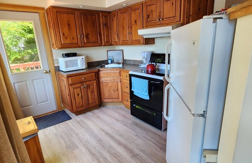 Come bedtime, one upstairs bedroom has a bunk bed with a full size bed on the bottom and twin on top while the master has a queen sized bed. There is also a pull out couch downstairs if needed. If you leave the curtains open, you can fall asleep looking at the stars and wake up to watch the steam rising off the water as the sun rises above the mountains. Linens and towels are available but we simply ask that if you use them that you kindly wash them in the on site washer and dryer before you leave. We hope that you and your family will come experience the best that the White Mountain's have to offer.