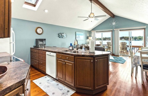 Lakefront cottage with private beach, smokeless fire pit, boat slip & Pontoon boat* for hire!