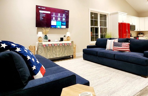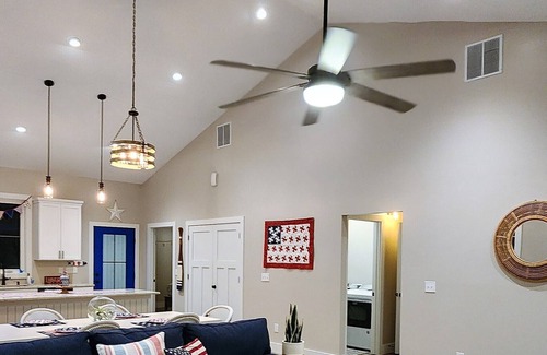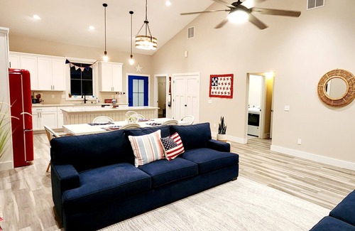 Escape to our cozy Creek House on Craigs Creek in Warsaw, Kentucky! This brand new home, built in 2021, offers modern amenities and a warm atmosphere. With 2 bedrooms, 2 bathrooms, and a fully equipped kitchen, it accommodates up to 7 guests. Enjoy the peaceful surroundings and grill on the deck while taking in the view. The property includes a two-boat covered dock for fishing, boating or taking in the scenery. Experience the warmth and hospitality of our Creek House decorated with Americana!