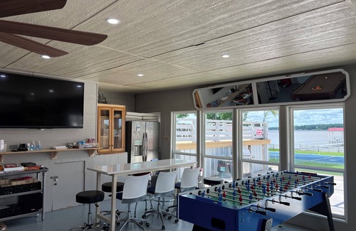 This cozy home is located almost at the tip of the beautiful Cooley Point on the Eagle Mountain Lake. It will be a hit for all ages with our game room complete with a pool table, ping pong table, foosball table, arcade gaming system, high speed internet, and several large TVs throughout. Our newly renovated home has 3 bedrooms and 2 baths that sleep 10 and equipped with brand new updated furniture!