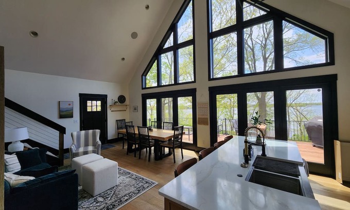 Kick back and relax in this calm, stylish space - less than an hour from the Twin Cities! Take in the breathtaking views of Roberds Lake from your preferred spot - down at the dock, on the deck, or curled up on the couch inside the great room. Sunsets are to die for. Newly built with all the modern conveniences and comfortable spaces.
