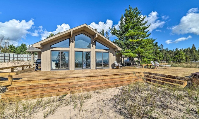Escape to the Great Lakes and stay at this 3-bedroom, 2-bath De Tour Village home on Lake Huron! This lakefront vacation rental features all the comforts of home as well as stunning views, private beach access, and a huge deck. Spend time grilling or reading near the water. Then, explore nearby restaurants, marinas, nature preserves, and more!