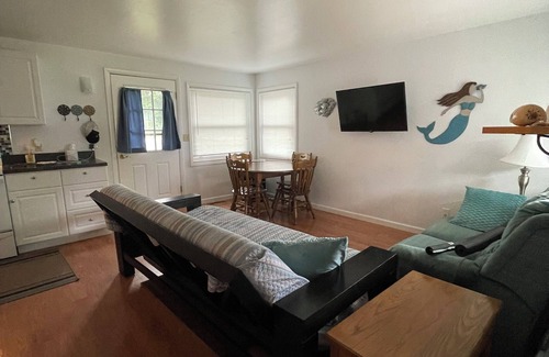 Nestled between Au Gres and Tawas, this delightful house with lakefront view and sandy beach offers a terrific stay for 8 guests. With 2 bedrooms including 1 full bed, 1 king bed, additional private area with a full bed, and a queen futon in living area, there's plenty of room for everyone. The bathroom features a full bathtub for rinsing off the sand. Enjoy all that Au Gres and East Tawas has to offer when you stay at our place.