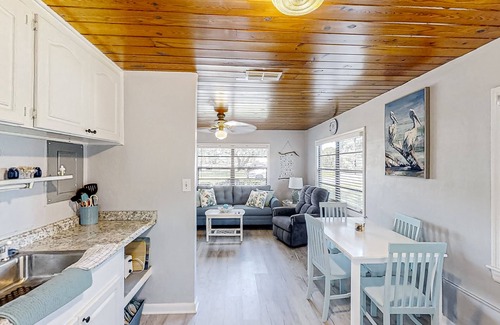 The space is bright and inviting, with updated fixtures and decor for ultimate home comfort. The single-level, ground-floor layout offers convenient accessibility for all. The full kitchen is well-equipped for home cooking and there's also a private gas grill out on the patio for blue-sky barbecues. Home essentials include central air-conditioning and free WiFi.