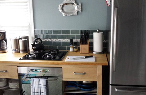 Outside you will find a private backyard with charcoal grill, picnic table and umbrella, and two zero gravity loungers for relaxing. The beach wagon is ready with a cooler, chairs, and umbrella. Don't forget to grab your beach towels from the basket indoors. Kayaks and life jackets are also available.
