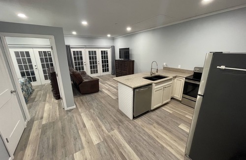 Downtown Douglas located 6 miles away! Come enjoy a relaxing stay in a newly renovated 1 bed, 1 bath Bungalow! This is a stand alone house and is furnished with a Queen bed and two folding single beds with comfortable 5 inch memory foam mattresses. The kitchen is stocked with basic cooking supplies, Oven/stove, microwave, full size refrigerator, knife set, dishes and dishwasher. Washer and Dryer combo is located inside the unit. Small desk and dedicated High speed internet / wifi is located inside the Bungalow. There is a smart TV located in the Family Room and a second smart TV located in the Bedroom. Lake front pool is available during daylight hours. 3 Kayaks (1 tandem, 1 large fishing and 1 smaller single) are available anytime to explore the cypress grove only a few hundred yards from the house. Property is shared with Lake Life Tiny House which is also available for short term rent. You will pull into a dead end street with the property surrounded by water on all sides. Next to the lake Life Tiny house you will find a water fall, if there has been any rain anytime recently, you will enjoy the calming sound of the waterfall and plentiful fish. The main house is occupied by the host, with the lake side pool in the back yard of the main house. You will find a gas grill by the pool and a pellet smoker grill for your use under the carport.