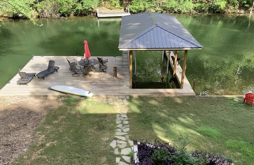 A a great location in Sandy Creek on Lake Martin. Waterfront with boat dock and swim area. Close to Smith mountain for morning hikes. Paddle board or take a kayak out for the day. Covered balcony with all the amenities for entertaining. Master suite on main level and 2 bedrooms with bonus area downstairs with walk out to the dock. Huge fire pit for roasting marshmallows etc. Great for family vacations and more. Come relax at the lake !!
