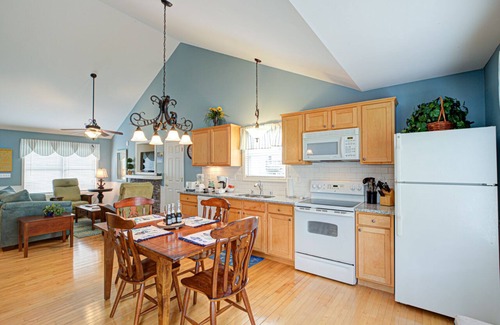 Edgewater Resort, 20 minutes from Louisville, is Taylorsville Lake's premier vacation spot, tucked away in a gated community with over 163 acres that overlooks the marina. Within walking distance you'll find a community pool (seasonal) with a sand volleyball court and a fire pit. This two-story cottage sleeps up to 10 guests and showcases two private balconies in the master suite with a jetted soaking tub. You can also hang out on the private deck out back with a four-person hot tub perfect for star-gazing at night.