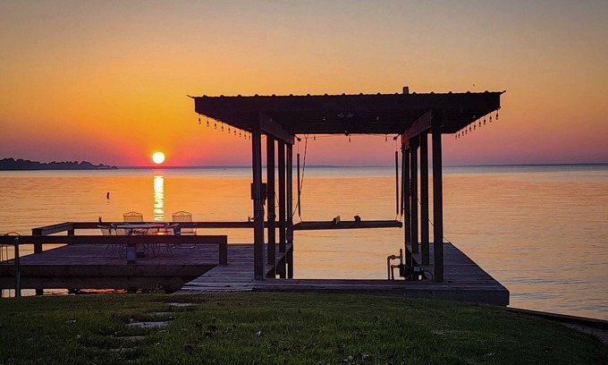 CCSunset Cottage is an ideal place for photographers looking for a great sunset view or bird spotting, and a perfect place for a single-family or couples who like to spend time outdoors either on the large deck, dock, patio, or yard doing activities with friends or family. We provide a couple of yard games, a lily pad, kayaks, and a Paddle Board, you provide the fun. The house is located in a deep water area and is great for fishing. Catfish will hang around the dock and will appreciate it if you feed them some catfish food around dust.