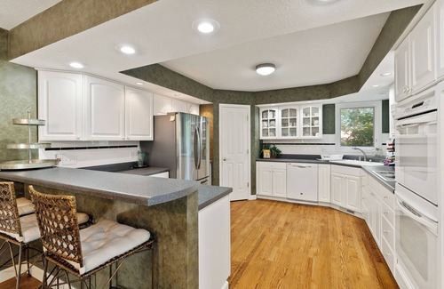Full-Function Kitchen: The expansive kitchen is fully equipped with double ovens, a large pantry, and table settings for up to 24 guests, making it easy to cater meals for your wedding party or host celebrations.