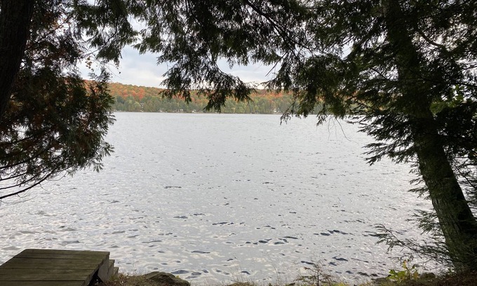 In winter, the snow-covered landscape creates a picturesque scene, inviting you to partake in ice fishing, cross country skiing and snowmobiling on nearby trails, or ice skating on the frozen lake.