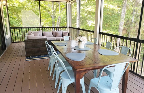Large and welcoming with games, 75-inch TV and walkout to the covered patio and wooded backyard leading straight to the dock. A nicely appointed queen bedroom with attached bath plus a teepee for the little ones are sure to please. Relax in the large sectional watching the big game or your favorite movie. Grab a book from our collection, read to the little one or play a round of air hockey (tournament size) or corn hole. Something for everyone!