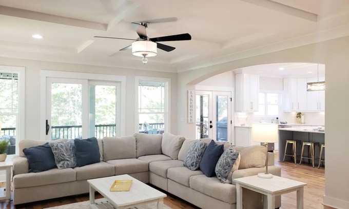 More than 3800 sq ft of luxurious touches and attention to detail. Toiletries, towels, linens and starter supplies of dish and laundry soaps provided. Being a water property, a waiver will be sent to the main guest prior to check in - all guests must sign before release of door code.