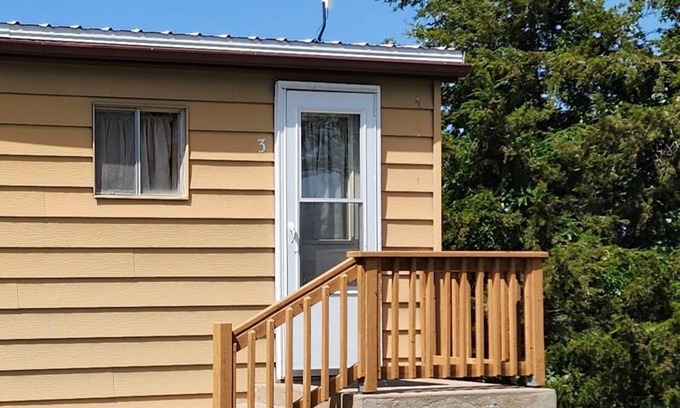 Located in Lemoyne, only 3/4 of a mile to Lemoyne Bay on Lake McConaughy. This charming cabin has a cozy feel. This listing is for Cabin #3 a small single room cabin. It sleeps up to 2 people with a queen bed, a bathroom with a shower, kitchenette (cook-top stove, microwave, refrigerator with a freezer, coffee pot, pots, pans and dishes), a Roku tv, A/C, and free WiFi. Guests can unwind after a day of exploring. We think our place will help you experience everything Lemoyne has to offer. You can visit the onsite convenience store Vogl's Lodge and Lure for additional details of the area. Cabin 3 is a duplex unit and does sharing a wall with Cabin #2. Each cabin is a separate living space.