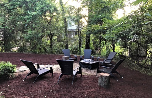 Full of light and windows, the lower level of The Riviera has a large central living space with a sectional sofa, a 57” TV, and an additional stone gas-fired fireplace. With its ping-pong table and large game table, it is great for family fun. Sliding glass doors open out to the backyard and fire pit area—perfect for roasting marshmallows and unwinding once the stars come out! Deer can be seen moseying around the backyard, often at dawn and dusk.