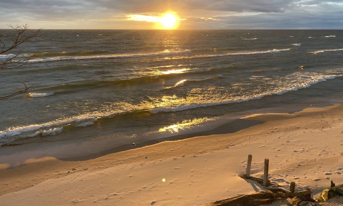 Quiet time in nature should be part of a wellness routine, like meditation or yoga. If you’re stressed out, you should be able to pull a rip cord and be sitting at a campfire. This is that place. Why settle for cold and impersonal when you can stay here in this warm, inviting home where you have the beauties of Lake Michigan to admire? The home is directly on the Lake. Enjoy the stunning infinity lake views from nearly every window. The deck overlooks a gorgeous sweep of Lake Michigan that is perfect for swimming. Just 22 steps down to the spacious white sugar sand beach! Our cosy year-round home offers spring and summer sun and fun and Fall’s quiet beauty. Winter is a quiet escape for special holiday memories with family, cocoa by the fireplace and sweeping views of majestic waves skinned with ice.