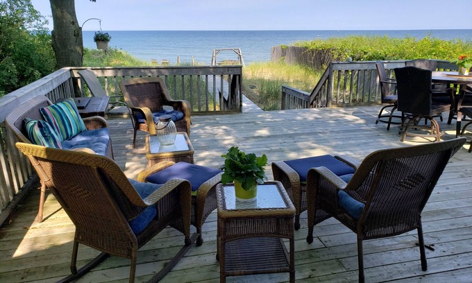 - Lake Michigan Beachfront Cottage Huge Deck Low Bluff Newly Remodeled Kayaks SUP