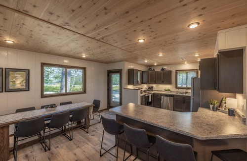 Through the sliding glass doors, step outside to the back deck that provides ample seating and the perfect place to soak in Midwestern sunsets. You and your guests can sit back and relax while the BBQ champion whips up their favorites on the gas grill or watch the kids enjoying the water activities at the lake below. Plus, an outdoor fire pit and a private dock provide additional outdoor entertainment spaces for people of all ages! So what are you waiting for? Experience a completely private, woodland inspired vacation the Innsbrook Vacations way in this one-of-a-kind rustic chalet!