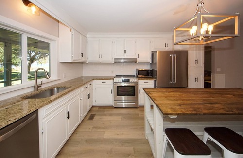 Enjoy endless boating, jet skiing, and fishing right outside your back door. This boater’s paradise is located on a canal and offers your very own private boat landing with bulkhead to tie up your boat or launch kayaks. We include 4 kayaks, paddles and life vests for guest use. Whether you’re going fishing or looking for a day of fun in the sun, this home offers easy access on and off the water so you can start taking advantage of all that Lake Moultrie has to offer. This lakefront home was designed to make lasting vacation memories. Unwind and experience the kind of relaxation only a lake house can provide. The Cove offers three bedrooms, two full baths, and sleeps up to 8 guests. Modern décor, fresh linens, comfortable beds, and well stocked kitchen. During the cooler months, curl up with a cup of hot tea and enjoy the wood burning fireplace. Whether you’re looking to get away, wind down, and relax or a fun packed weekend of water activities, The Cove truly has it all.
