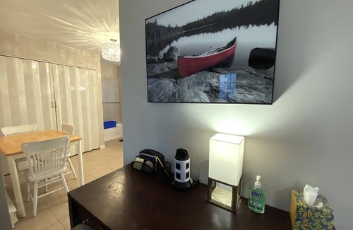 But thats not all - this retreat is located near the North Bay hospital and the breathtaking Duchesnay Falls trails, perfect for exploring the outdoors. And with a fully stocked suite you’ll have everything you need during your stay, including lightning-fast 400Mbps wifi internet, perfect for staying connected and productive. So why wait? Book your stay today and experience the serene beauty of the country and convenience of the city.