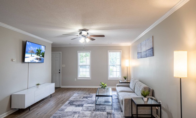 Experience the best of Mooresville in our cozy 2BR haven, your gateway to Race City USA. Located just a stone's throw from downtown and the serene Lake Norman, adventure is always on your doorstep. Wake up in plush beds, then cook breakfast in our modern kitchen.