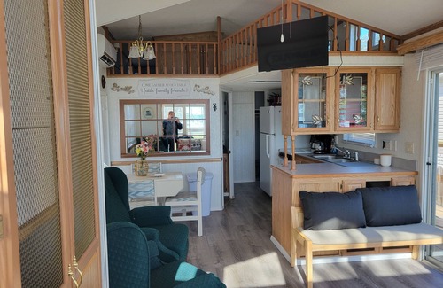This little getaway Home on Lake Palestine, is a fantastic way to enjoy the Lake. Sit on the large deck and take in the beautiful views of Lake Palestine. Our tiny home has a fenced in back yard for your fur baby to roam. There is nothing better than sitting on the deck sipping your coffee and watching the sun rise over Lake Palestine. The home has everything you would want with a full kitchen, dishwasher, washer and dryer, two bedrooms, and a nice size area to visit in. The dock is an awesome way to enjoy your water toys. This is a great way to spend the weekend and unwind visit us on Lake Palestine today.