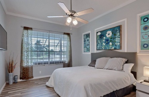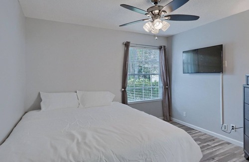 Welcome to this stunning 4 bedroom, 2 bathroom pool house located in the heart of Wellington. With a living space of 2,000 sq ft, this spacious home offers comfort and relaxation for your stay. The master bedroom features a king-size bed, while one bedroom has a twin bed, and the other two bedrooms are furnished with queen-sized beds, ensuring a comfortable night's sleep for all guests. There are two modern design bathrooms come complete with essential toiletries for your convenience. Additionally, there is a walk-in closet for your storage needs.