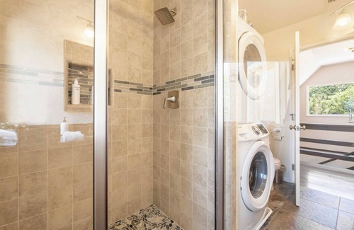 A BBQ grill, a fireplace, air conditioning, and a ceiling fan are featured at this 4-bedroom, 3-bathroom rental. Bathroom amenities include free toiletries, towels, and toilet paper. Prepare a home-cooked meal in the kitchen, complete with an oven, a stovetop, and a refrigerator, as well as cookware. And there's a washer/dryer, so you can even pack a bit lighter.