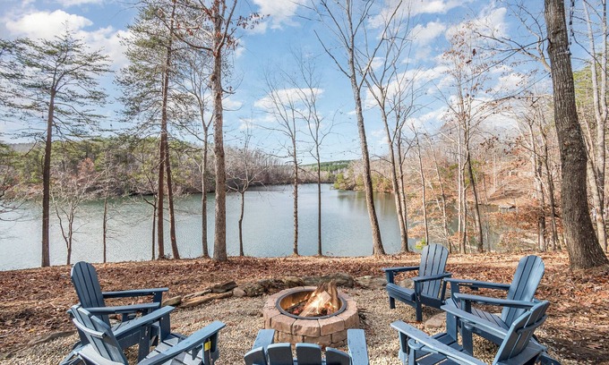 Escape to Lake Point Escape, Belews Lake's NEW waterfront vacation rental with 750 feet of shoreline. Bring your boat or rent one nearby. Enjoy beautiful lake sunset views from the double story deck, private boat dock, cove for fishing, diving board, hot tub, fire pit, canoe, arcade, corn hole, and enjoy scenic walks in the woods. 4 bedrooms (3 King rooms with views! a queen room with bunks) and 3 baths will accommodate up to 11. Close to Bella Collina Mansion if you are here for a wedding! Stay more than 2 nights and save!